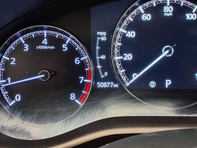 This vehicle comes equipped with: Preferred Package (Blind Spot Monitoring w/Rear Cross Traffic Alert, Dual-Zone Automatic Climate Control System, Exterior Mirrors w/Memory Positioning, Front Grille Black Gloss Paint, Gloss Painted Speaker Grille, Illuminated Vanity Mirrors, Leather-Wrapped Steering Wheel & Gear Shift Knob, Mazda Advanced Keyless Entry, Overhead Console w/Sunglass Holder, Rear Privacy Glass, Rear Seat Armrest w/Cupholders, Shark Fin Antenna, and Side Mirror Turn Lamps), 12 Speakers, 18 x 7J Alloy Wheels, 3.626 Axle Ratio, 4-Wheel Disc Brakes, ABS brakes, Air Conditioning, Alloy wheels, AM/FM radio: SiriusXM, AppLink/Apple CarPlay and Android Auto, Auto High-beam Headlights, Automatic temperature control, Brake assist, Bumpers: body-color, Compass, Delay-off headlights, Driver door bin, Driver vanity mirror, Dual front impact airbags, Dual front side impact airbags, Electronic Stability Control, Emergency communication system: MAZDA CONNECT, Exterior Parking Camera Rear, Front anti-roll bar, Front Bucket Seats, Front Center Armrest, Front dual zone A/C, Front reading lights, Front wheel independent suspension, Fully automatic headlights, Heated Front Bucket Seats, Heated front seats, Illuminated entry, Knee airbag, Leather Shift Knob, Leather steering wheel, Leatherette Seat Trim, Low tire pressure warning, Machine Gray Metallic Paint, MAZDA CONNECT Infotainment System Voice Command, Memory seat, Occupant sensing airbag, Outside temperature display, Overhead airbag, Overhead console, Panic alarm, Passenger door bin, Passenger vanity mirror, Power door mirrors, Power driver seat, Power steering, Power windows, Radio data system, Radio: AM/FM Audio System, Rain sensing wipers, Rear seat center armrest, Rear window defroster, Rear window wiper, Remote keyless entry, Speed control, Speed-sensing steering, Split folding rear seat, Spoiler, Steering wheel mounted audio controls, Tachometer, Telescoping steering wheel, Tilt steering wheel, Traction control, Trip computer, Turn signal indicator mirrors, and Variably intermittent wipers.