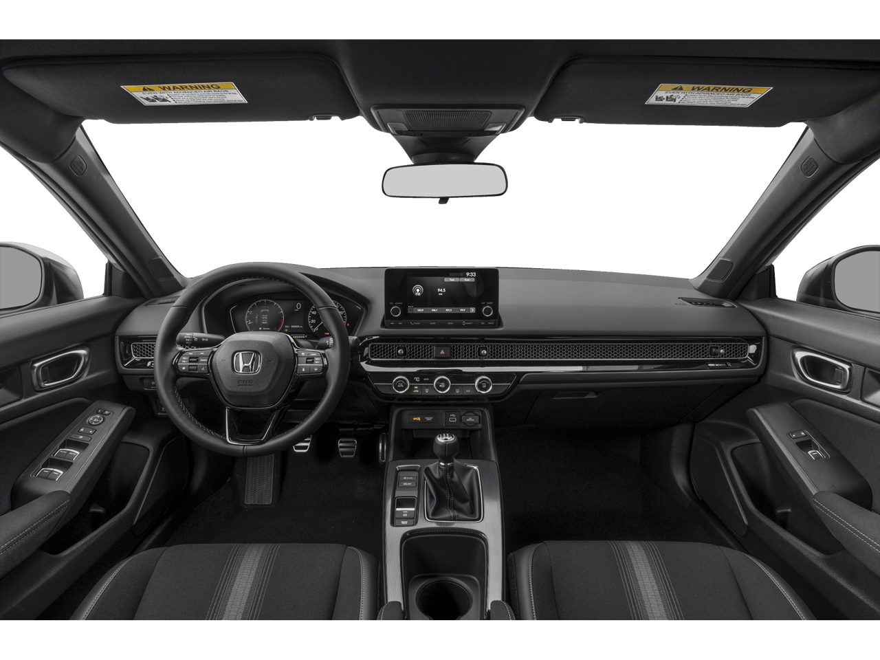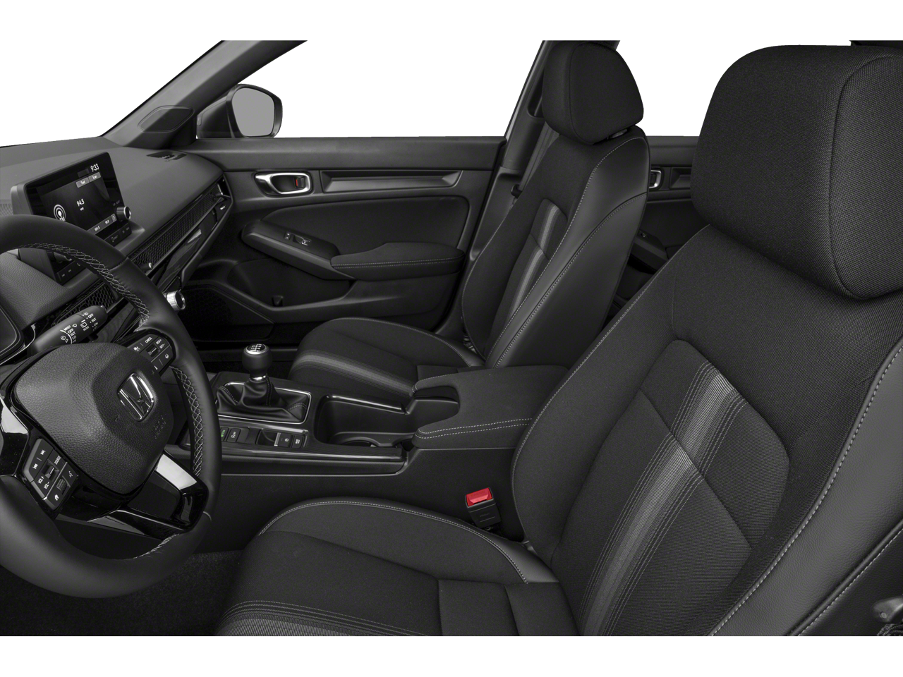 This vehicle comes equipped with : Black Cloth, 18" Alloy Wheels, 4-Wheel Disc Brakes, 8 Speakers, ABS brakes, Adaptive Cruise Control: Adaptive Cruise Control (ACC) with Low-Speed Follow, Air Conditioning, Alloy wheels, AM/FM radio, Apple CarPlay/Android Auto, Auto High-beam Headlights, Automatic temperature control, Brake assist, Bumpers: body-color, Delay-off headlights, Driver door bin, Driver vanity mirror, Dual front impact airbags, Dual front side impact airbags, Electronic Stability Control, Emergency communication system: HondaLink, Exterior Parking Camera Rear, Fabric Seating Surfaces, Forward collision: Collision Mitigation Braking System (CMBS) + FCW mitigation, Four wheel independent suspension, Front anti-roll bar, Front Bucket Seats, Front Center Armrest, Front reading lights, Fully automatic headlights, Illuminated entry, Knee airbag, Lane departure: Lane Keeping Assist System (LKAS) active, Leather Shift Knob, Leather steering wheel, Low tire pressure warning, Occupant sensing airbag, Outside temperature display, Overhead airbag, Panic alarm, Passenger door bin, Passenger vanity mirror, Power door mirrors, Power steering, Power windows, Radio data system, Radio: 180-Watt Audio System, Rear anti-roll bar, Rear side impact airbag, Rear window defroster, Rear window wiper, Remote keyless entry, Security system, Speed control, Speed-sensing steering, Split folding rear seat, Steering wheel mounted audio controls, Tachometer, Telescoping steering wheel, Tilt steering wheel, Traction control, Trip computer, and Voltmeter.