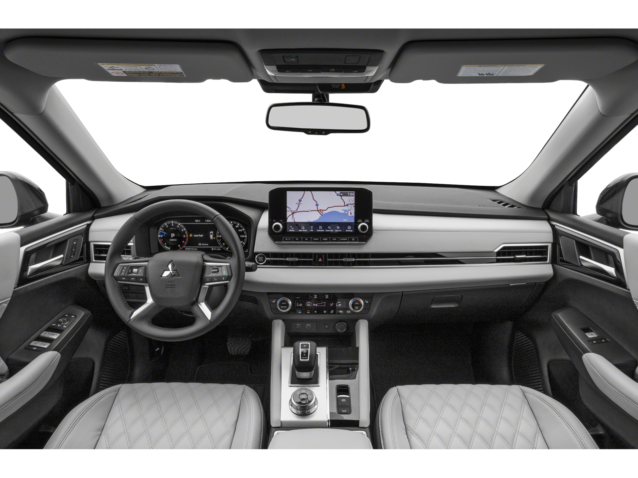 This vehicle comes equipped with : 3rd row seats: split-bench, 4-Wheel Disc Brakes, 6 Speakers, ABS brakes, Air Conditioning, Alloy wheels, AM/FM radio: SiriusXM, Android Auto & Apple CarPlay, Auto High-beam Headlights, Auto-dimming Rear-View mirror, Automatic temperature control, Axle Ratio: 5.694, Brake assist, Bumpers: body-color, Driver door bin, Driver vanity mirror, Dual front impact airbags, Dual front side impact airbags, Electronic Stability Control, Emergency communication system: Mitsubishi Connect w/ 24-month trial, Four wheel independent suspension, Front anti-roll bar, Front Bucket Seats, Front Center Armrest w/Storage, Front dual zone A/C, Front fog lights, Front reading lights, Fully automatic headlights, Heated door mirrors, Heated Front Bucket Seats, Heated front seats, Illuminated entry, Knee airbag, Leather Seat Trim, Leather Shift Knob, Leather steering wheel, Low tire pressure warning, Memory seat, Navigation system: Powered by TOMTOM, Occupant sensing airbag, Outside temperature display, Overhead airbag, Overhead console, Panic alarm, Passenger door bin, Passenger vanity mirror, Power door mirrors, Power driver seat, Power Liftgate, Power passenger seat, Power steering, Power windows, Radio data system, Radio: AM/FM 9.0" Navigation w/Smartphone Link, Rain sensing wipers, Rear air conditioning, Rear anti-roll bar, Rear seat center armrest, Rear side impact airbag, Rear window defroster, Rear window wiper, Reclining 3rd row seat, Remote keyless entry, Roof rack: rails only, Security system, Speed control, Speed-Sensitive Wipers, Split folding rear seat, Spoiler, Steering wheel mounted audio controls, Tachometer, Telescoping steering wheel, Tilt steering wheel, Traction control, Trip computer, Turn signal indicator mirrors, Variably intermittent wipers, and Wheels: 20" x 8J Two-Tone Alloy.