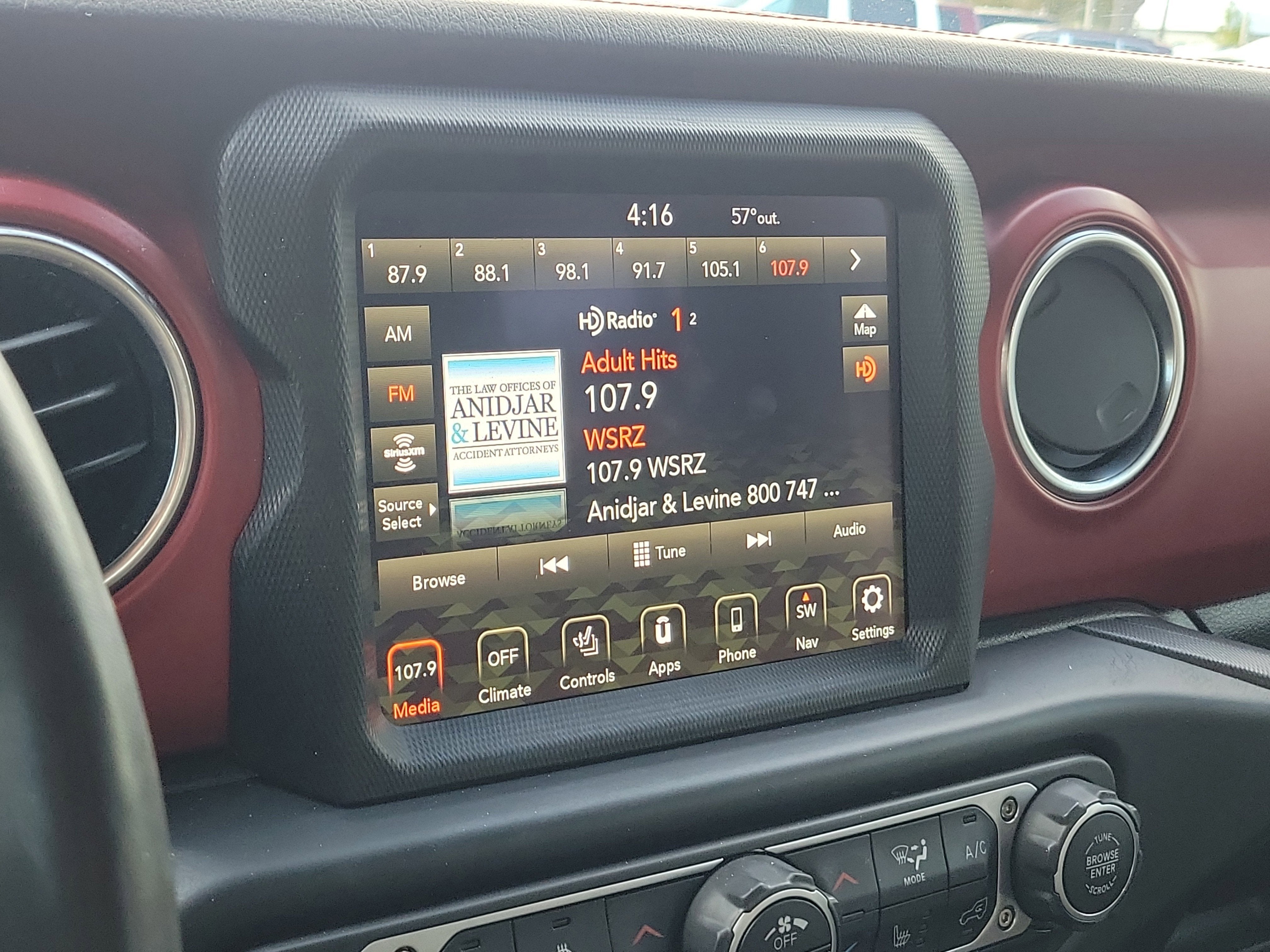 - Radio w/Seek-Scan, Clock, Speed Compensated Volume Control, Aux Audio Input Jack, Steering Wheel Controls, Voice Activation, Radio Data System and Uconnect External Memory Control