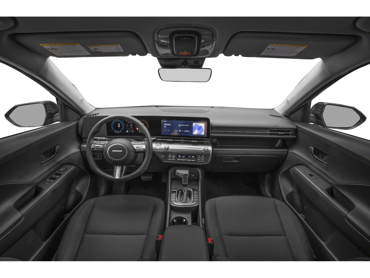 This vehicle comes equipped with : Option Group 01, 4-Wheel Disc Brakes, 6 Speakers, 6.052 Axle Ratio, ABS brakes, Air Conditioning, Alloy wheels, AM/FM radio: SiriusXM, Apple CarPlay & Android Auto, Auto High-beam Headlights, Automatic temperature control, Brake assist, Bumpers: body-color, Cloth Seat Trim, Delay-off headlights, Driver door bin, Driver vanity mirror, Dual front impact airbags, Dual front side impact airbags, Electronic Stability Control, Emergency communication system: Bluelink+, Exterior Parking Camera Rear, Four wheel independent suspension, Front anti-roll bar, Front Bucket Seats, Front Center Armrest, Front dual zone A/C, Front reading lights, Fully automatic headlights, Heated door mirrors, Illuminated entry, Leather Shift Knob, Leather steering wheel, Low tire pressure warning, Occupant sensing airbag, Outside temperature display, Overhead airbag, Panic alarm, Passenger door bin, Passenger vanity mirror, Power door mirrors, Power driver seat, Power steering, Power windows, Radio: AM/FM/HD Radio/SiriusXM Audio System, Rear anti-roll bar, Rear seat center armrest, Rear window defroster, Rear window wiper, Remote keyless entry, Security system, Speed control, Speed-sensing steering, Split folding rear seat, Spoiler, Steering wheel mounted audio controls, Tachometer, Telescoping steering wheel, Tilt steering wheel, Traction control, Trip computer, Turn signal indicator mirrors, Variably intermittent wipers, and Wheels: 18" x 7.0J Glossy Black Alloy.