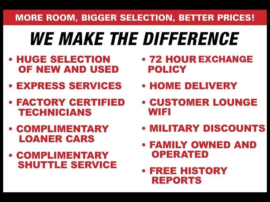 All vehicle specifications, prices and equipment are subject to change without notice. See above for information on purchase financing and lease program expiration dates. Prices and payments (including the amount down payment) do not include tax, titles, tags, documentation charges, emissions testing charges, or other fees required by law or lending organizations. The estimated payments may not include upfront finance charges that must be paid to be eligible for the purchase financing program used to estimate the APR and payments. Listed Annual Percentage Rates are provided for the selected purchase financing or lease programs available on the current date. Program expiration dates reflect currently announced program end dates, but these programs are subject to change at any time. Lessees will be financially responsible for mileage beyond the elected quantity and for vehicle maintenance and repairs and excessive vehicle wear. Option to purchase at lease end for an amount may be determined at lease signing. Payments may be higher in some states. You may not be able to combine other incentives with the purchase financing or leasing programs presented above. Residency restrictions may apply. See dealer for details. Listed APR, down payment, payments, incentives and other terms are estimates for example purposes only. Information provided is based on very well-qualified buyers or lessees. The payment information provided here is not a commitment by any organization to provide credit, leases or other programs. Some customers may not qualify for listed programs. Your terms may vary. Lessor must approve lease. Credit approval required. * The advertised price does not include sales tax, vehicle registration fees, other fees required by law or finance charges. Price includes dealer doc fee of $998. * Images, pricing and options shown are examples, only, and may not reflect exact vehicle color, trim, options, pricing or other specifications.