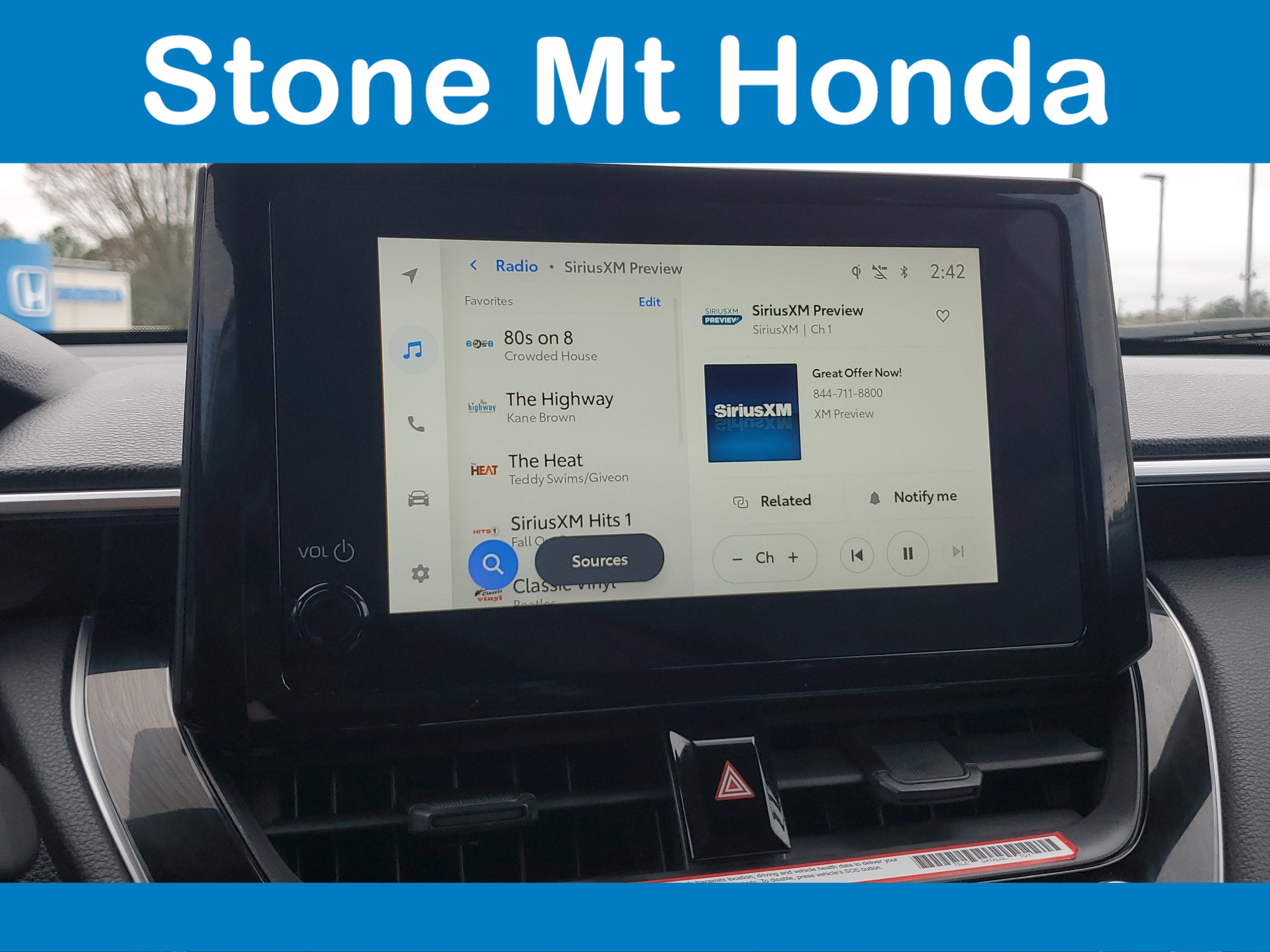 - Radio: 8" Touch-Screen Display Audio -inc: 6 speakers, wireless Android Auto compatible, wireless Apple CarPlay compatible, SiriusXM w/3-month Platinum plan trial subscription, steering wheel audio controls and Bluetooth® hands-free voice command