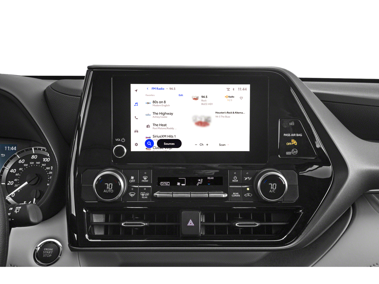 This vehicle comes equipped with: ABS brakes, Active Cruise Control, Alloy wheels, Electronic Stability Control, Front dual zone A/C, Heated door mirrors, Illuminated entry, Low tire pressure warning, Power Liftgate, Remote keyless entry, Traction control, 18 Painted Alloy Wheels, 3rd row seats: split-bench, 4-Wheel Disc Brakes, 6 Speakers, Air Conditioning, AM/FM radio: SiriusXM, Apple CarPlay/Android Auto, Auto High-beam Headlights, Automatic temperature control, Brake assist, Bumpers: body-color, Delay-off headlights, Driver door bin, Driver vanity mirror, Dual front impact airbags, Dual front side impact airbags, Emergency communication system: Safety Connect (up to 10-year trial subscription), Exterior Parking Camera Rear, Fabric Seat Trim, Four wheel independent suspension, Front anti-roll bar, Front Bucket Seats, Front Center Armrest, Front fog lights, Front reading lights, Fully automatic headlights, Knee airbag, Leather Shift Knob, Leather steering wheel, Occupant sensing airbag, Outside temperature display, Overhead airbag, Overhead console, Panic alarm, Passenger door bin, Passenger vanity mirror, Power door mirrors, Power driver seat, Power steering, Power windows, Radio: 8 Toyota Audio Multimedia, Rear air conditioning, Rear anti-roll bar, Rear reading lights, Rear seat center armrest, Rear window defroster, Rear window wiper, Reclining 3rd row seat, Security system, Speed control, Speed-sensing steering, Split folding rear seat, Spoiler, Steering wheel mounted audio controls, Tachometer, Telescoping steering wheel, Tilt steering wheel, Trip computer, Turn signal indicator mirrors, and Variably intermittent wipers.