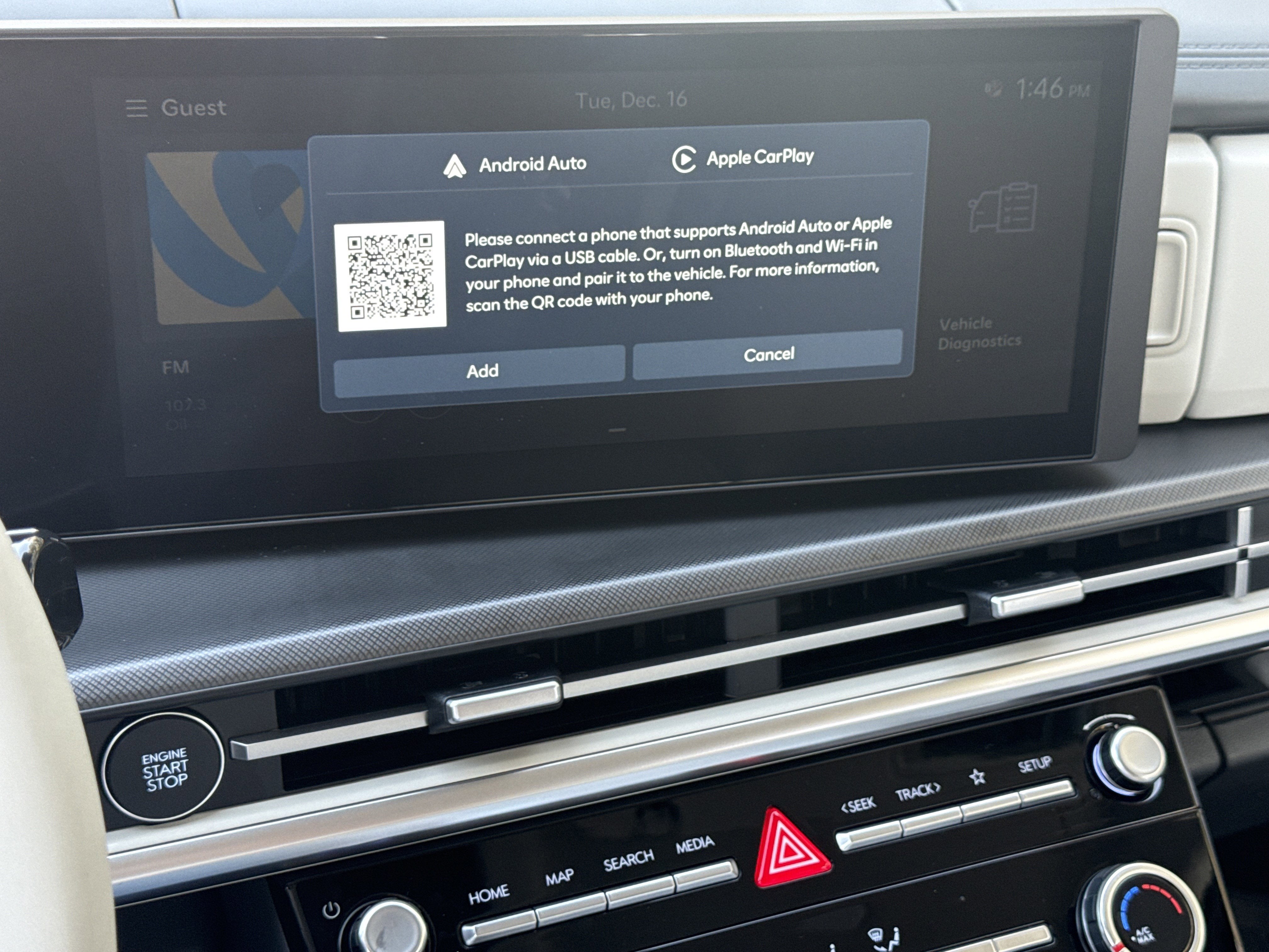 - Radio: AM/FM/HD Display Audio -inc: 6 speakers, 12.3" display, Apple CarPlay, Android Auto, Bluetooth® hands-free w/wireless audio streaming, USB connectivity, SiriusXM, Blue Link+ connected car system and rear seat quiet mode